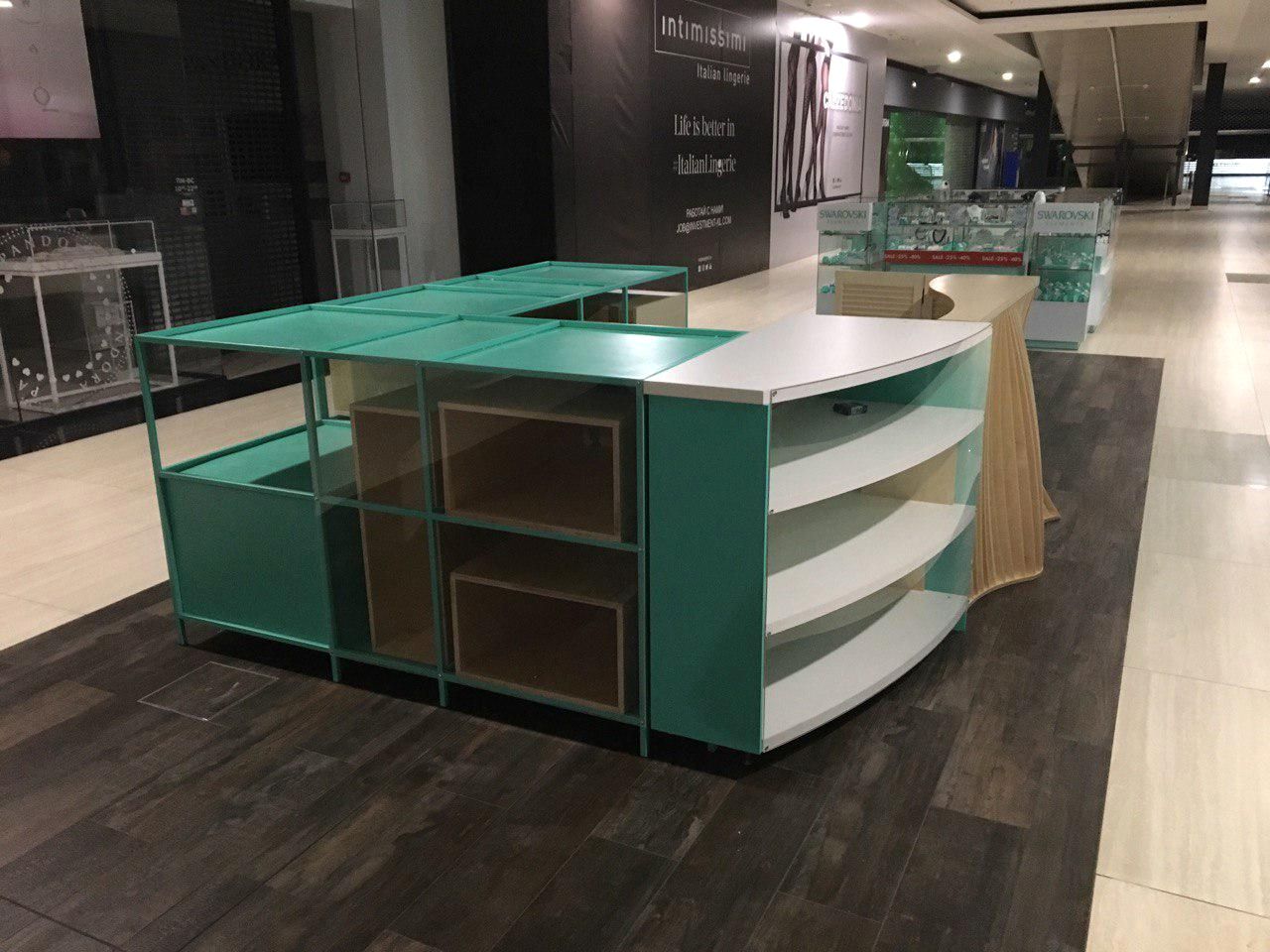 - Использовали металлические основания и ящики для эстетичной выкладки товара. Все это под прочным оргстеклом.