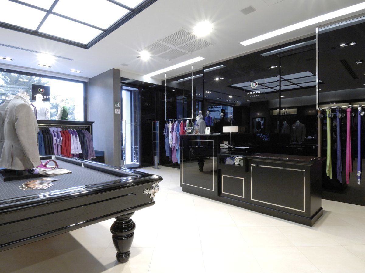 Закрытый клуб или магазин мужской одежды? Именно такая мысль посещает, когда впервые видишь магазин Fradi Store. Стильный, строгий, лаконичный, как мужская одежда, представленная в нем.